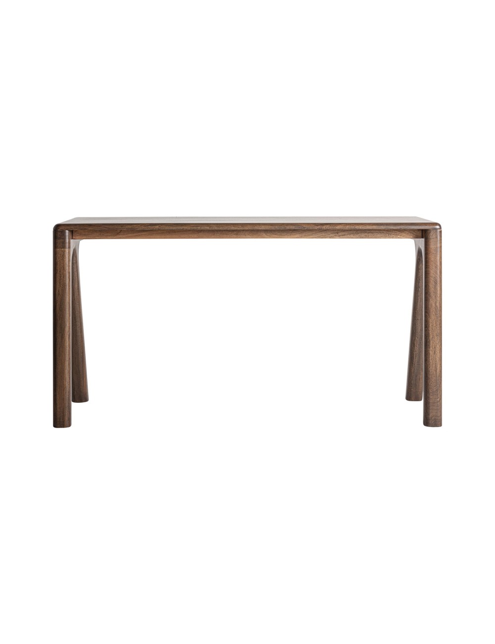 Escritorio wilsau, en color marrón natural, de estilo contemporáneo. Fabricado en madera de mango. Producto desmontable. |