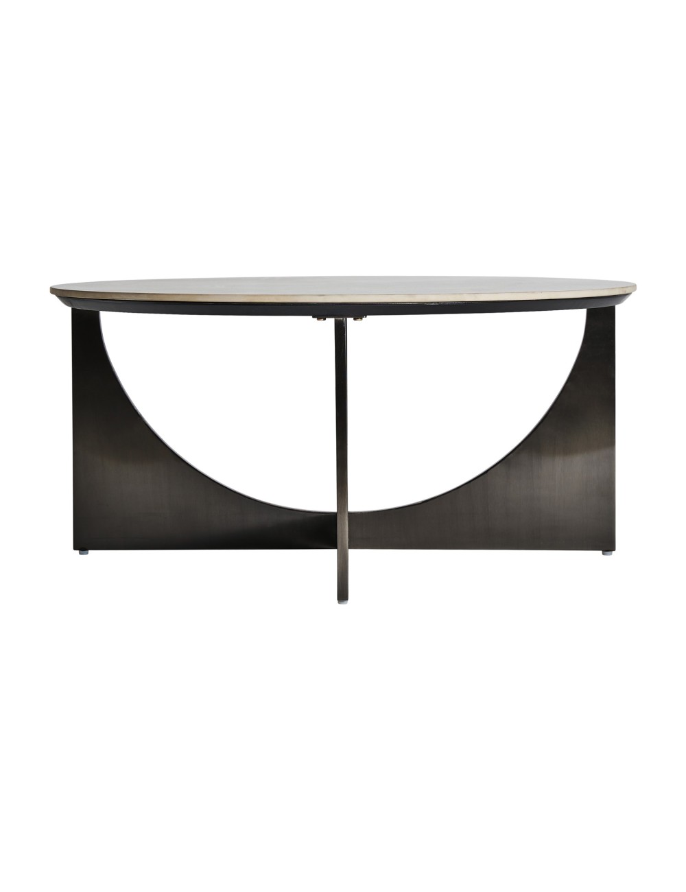 Mesa de centro aheim, en color verde/azul, de estilo art deco. Fabricado en acero, combinado con mármol sintético. Producto desmontable. |