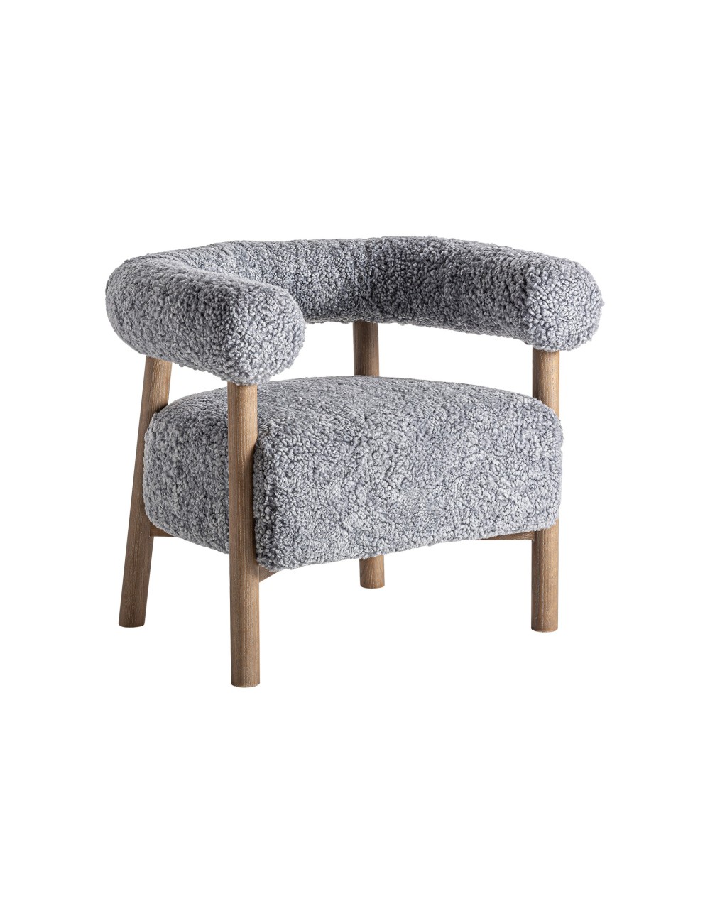 Sillón allitz, en color gris, de estilo contemporáneo. Fabricado en madera de fresno, combinado con poliéster y espuma.