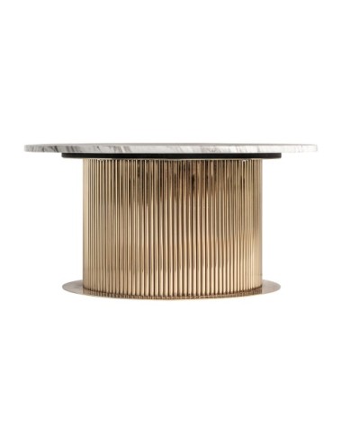 Cómoda killeany, en color marrón, de estilo industrial. Fabricado en madera de mango, combinado con hierro. | Mesa de centro breisach, en color blanco/oro, de estilo art deco. Fabricado en acero, combinado con mármol sintético. |
