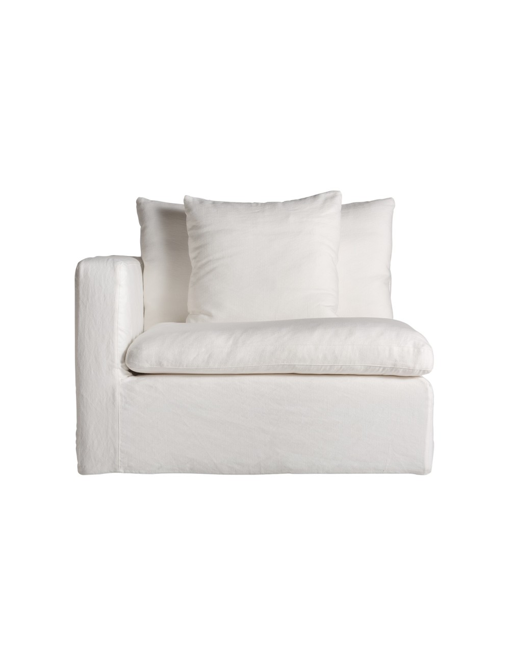 Sofá modular agde, en color blanco, de estilo art deco. Fabricado en lino, combinado con algodón y espuma. Producto desmontable, desenfundable. Compatible con: 35112,35111,35114. |