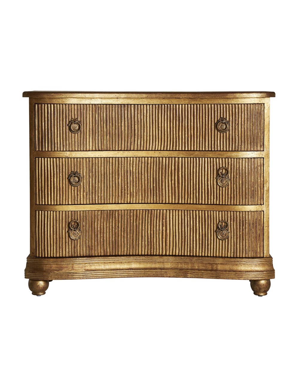 Cómoda vernon, en color oro viejo, de estilo clásico. Fabricado en madera de mango, combinado con hierro.