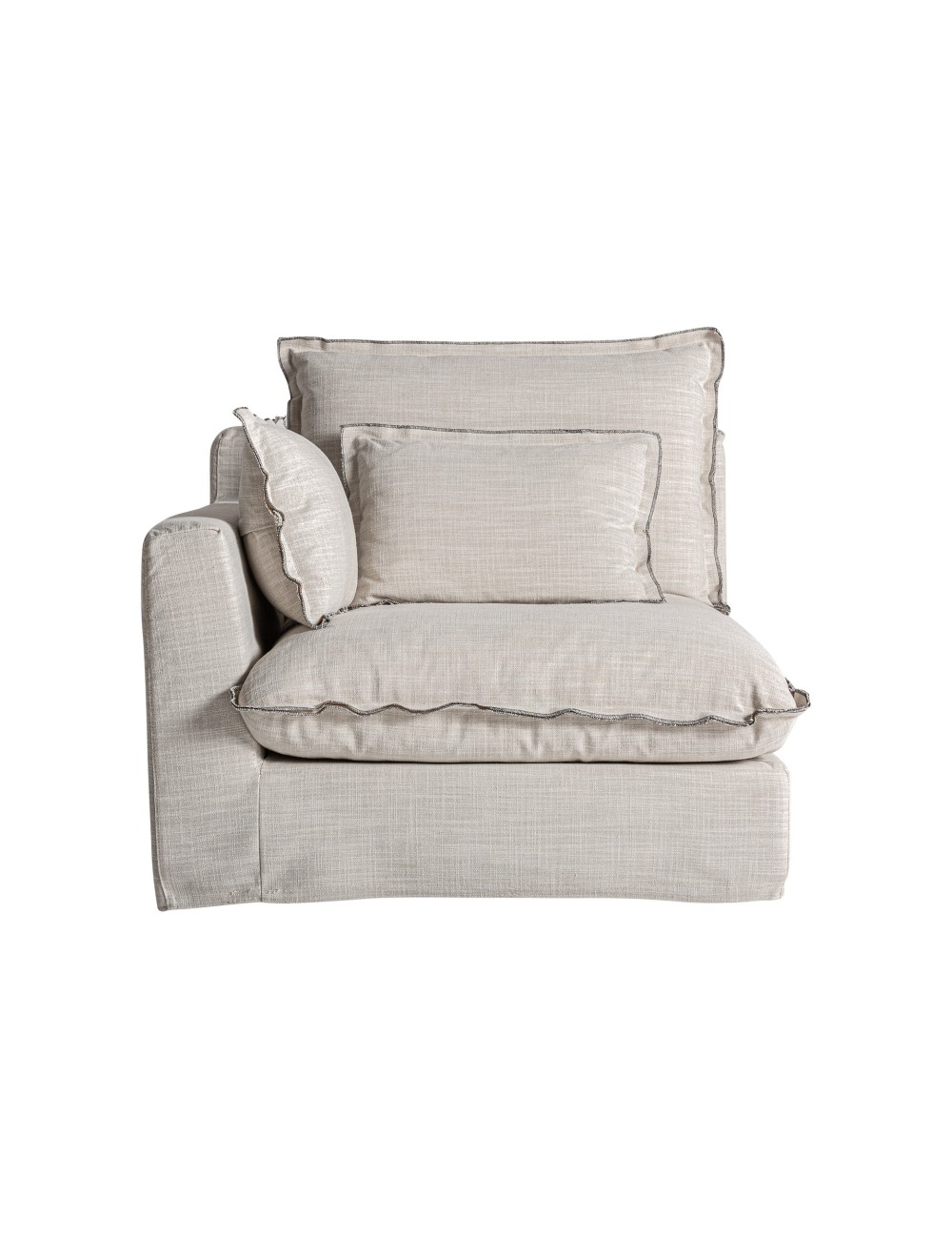 Sofá modular bief, en color blanco roto, de estilo clásico. Fabricado en poliéster, combinado con madera de pino y espuma. Relleno: 65% espuma, 20% fibra, 10% pluma de pato, 5% entretela. Producto desenfundable. Compatible con: 35595,35596,35597.