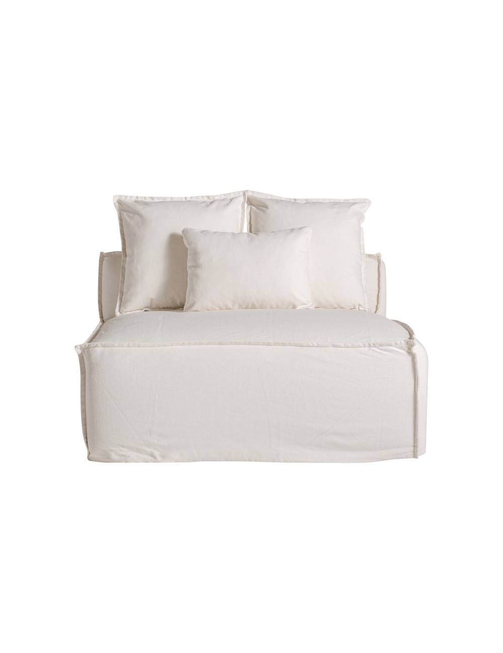 Sofá modular virolle, en color blanco, de estilo art deco. Fabricado en lino, combinado con algodón y espuma. Producto desenfundable.