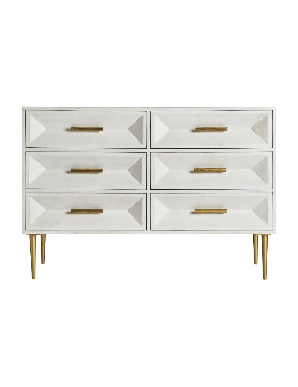 Cómoda Kempten, en color Crema/Oro Viejo, de Estilo Art Deco.Fabricado en Madera de Mango, Combinado Con Madera Dm Y Hierro.Producto Desmontable.