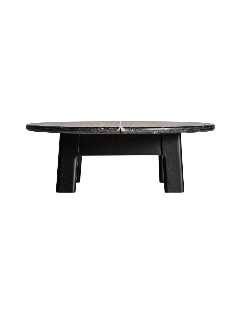 Mesa de centro nara, en color negro, de estilo contemporáneo. Fabricado en madera de mango, combinado con mármol. Producto desmontable.