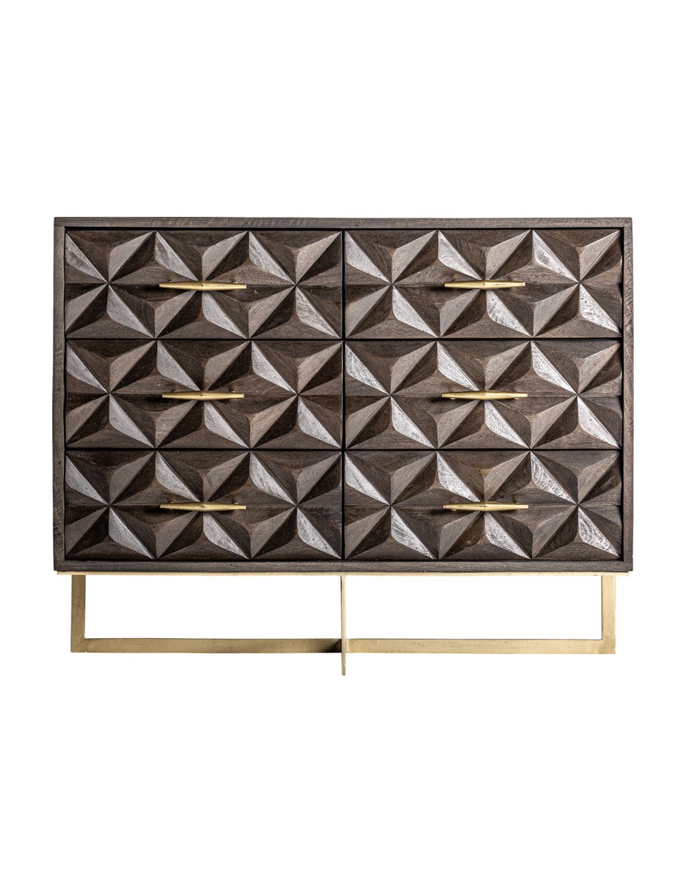 Cómoda tully, en color marrón/oro, de estilo art deco. Fabricado en madera de mango, combinado con latón.