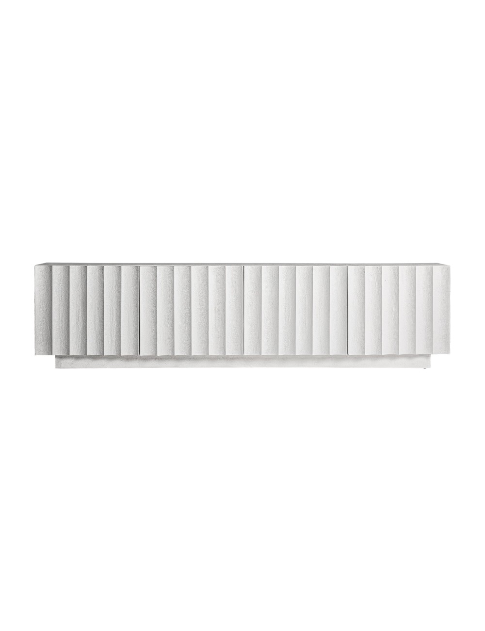 Mueble t. V. Mulcey, en color blanco, de estilo contemporáneo. Fabricado en cemento.