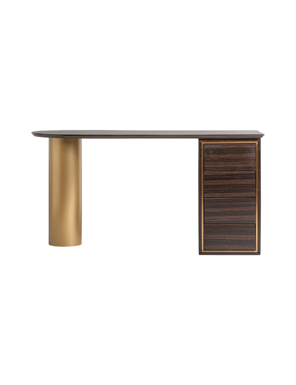 Escritorio cheb, en color marrón/oro, de estilo art deco. Fabricado en madera de pino, combinado con acero. | Mueble tv prayssac, en color crema, de estilo art deco. Fabricado en madera roble. | Sofá modular lurcy, en color beige, de estilo colonial. Fabricado en poliéster, combinado con madera de pino y espuma. |