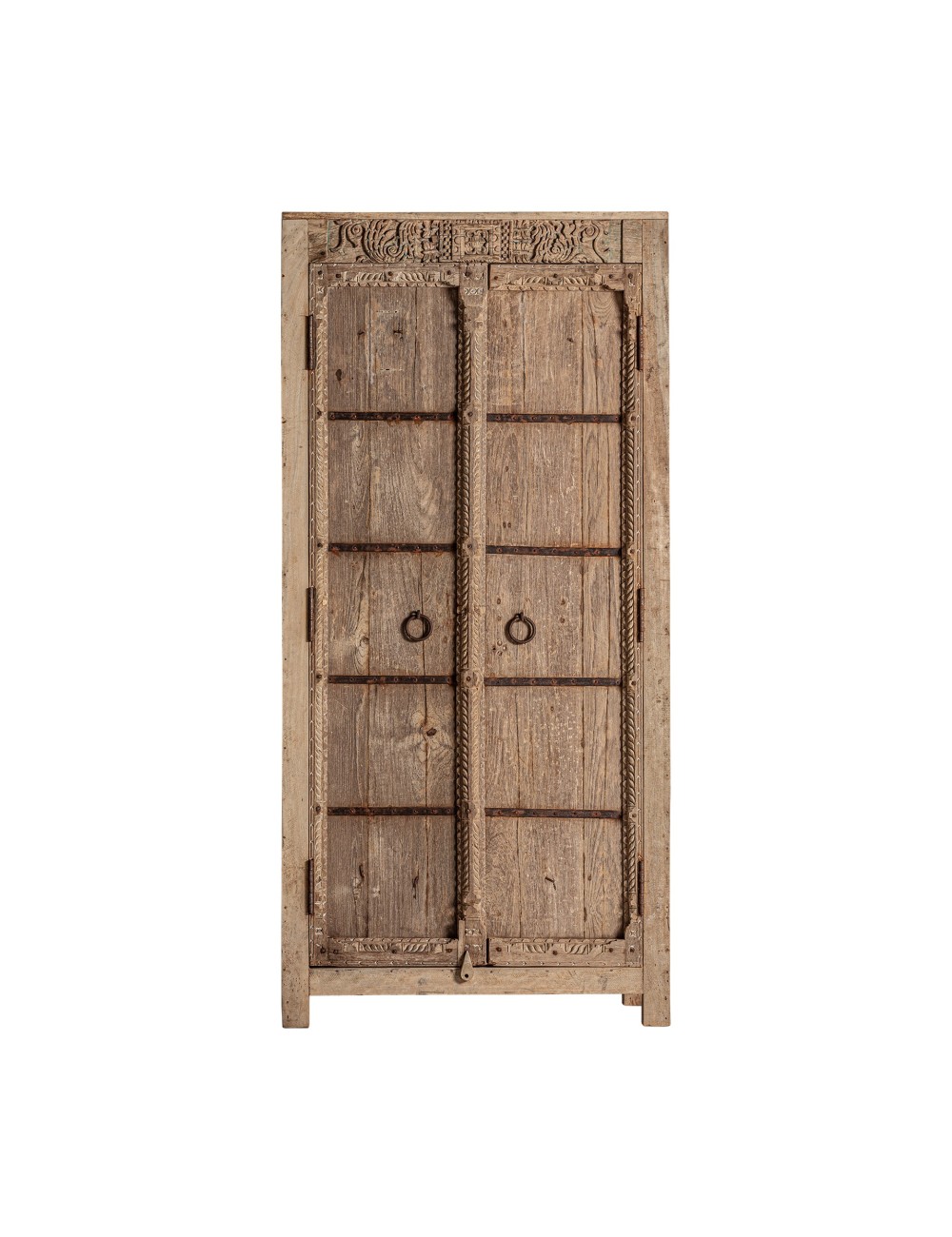 Armario socken, en color marrón, de estilo colonial. Fabricado en madera de teka, combinado con hierro.