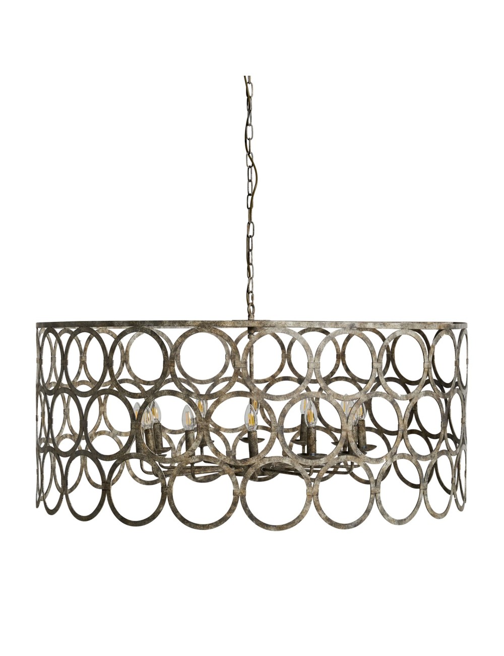 Lámpara de colgar, en color plata envejecido, de estilo provenzal. Fabricado en hierro.