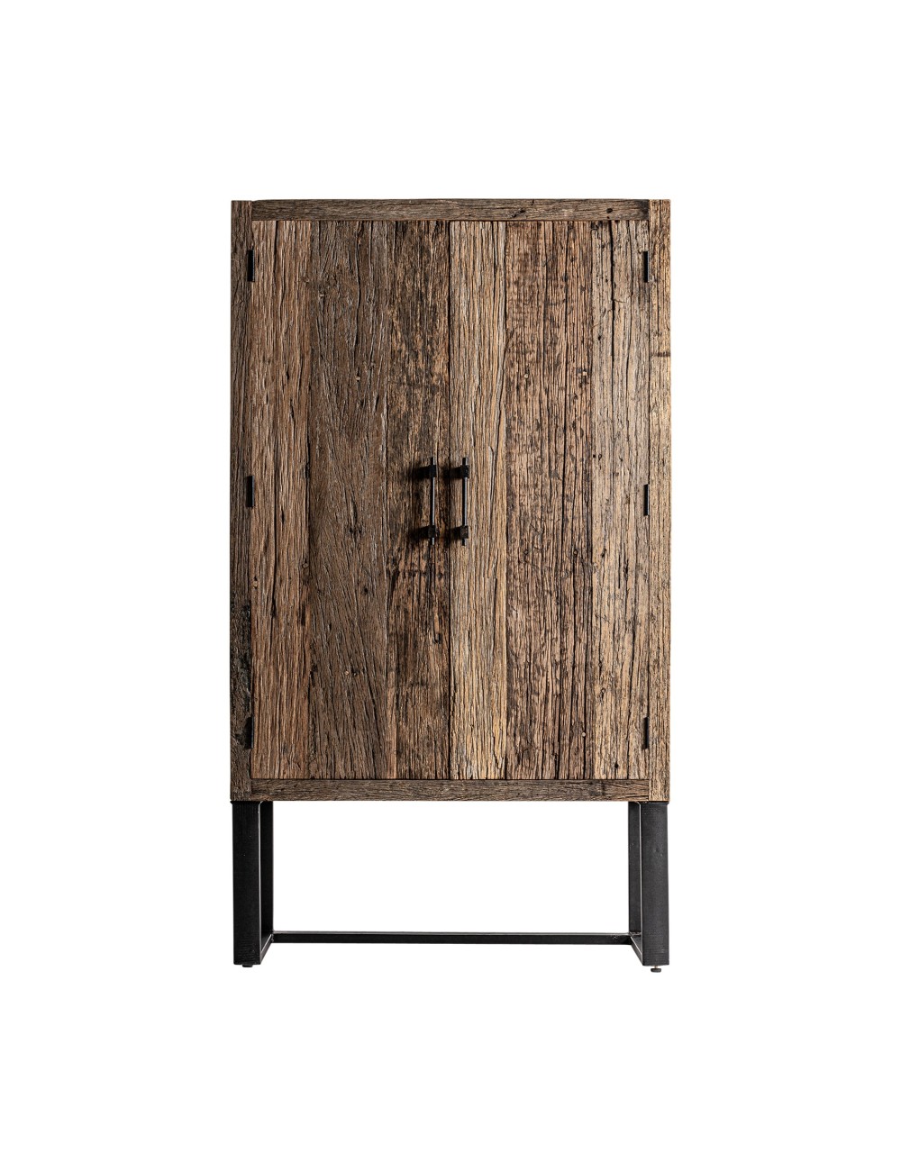 Armario carrik, en color marrón, de estilo colonial. Fabricado en madera recuperada, combinado con metal.
