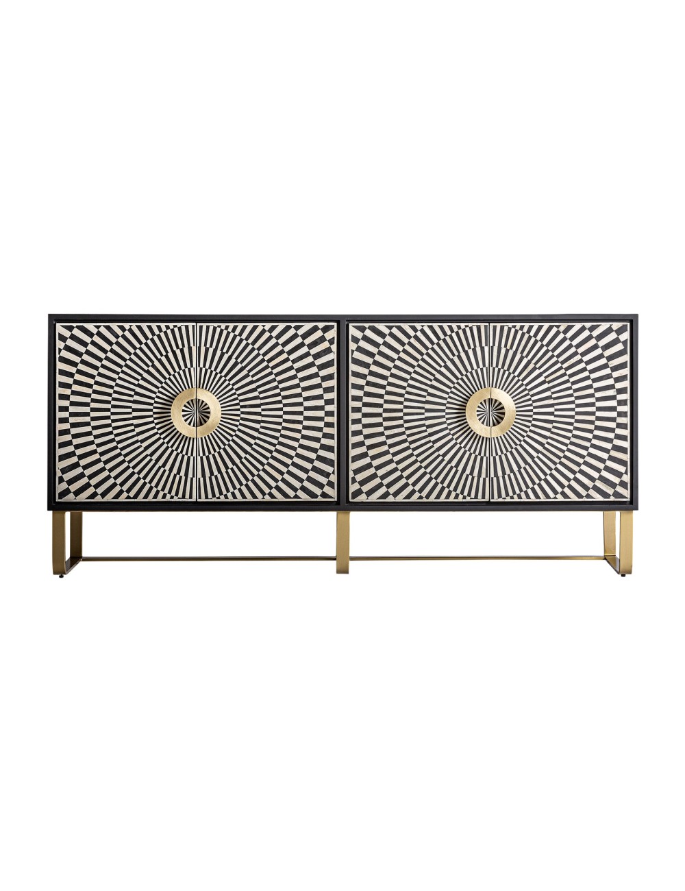 Aparador gatsby, en color negro/blanco/oro, de estilo art deco. Fabricado en madera dm, combinado con hueso y hierro.