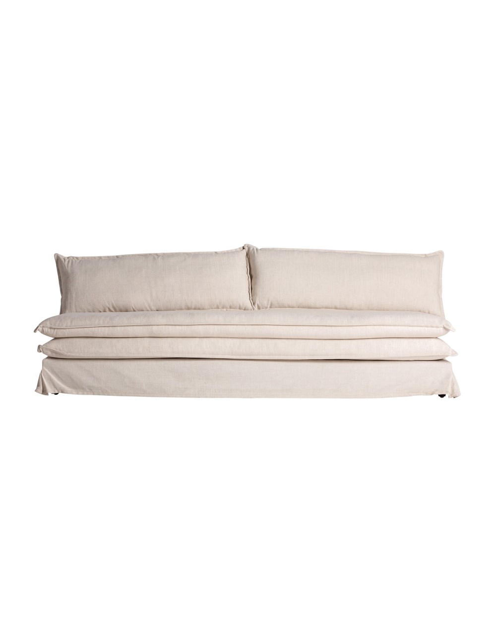 Sofá ospizio, en color blanco roto, de estilo contemporáneo. Fabricado en madera de pino. Producto desmontable, desenfundable.