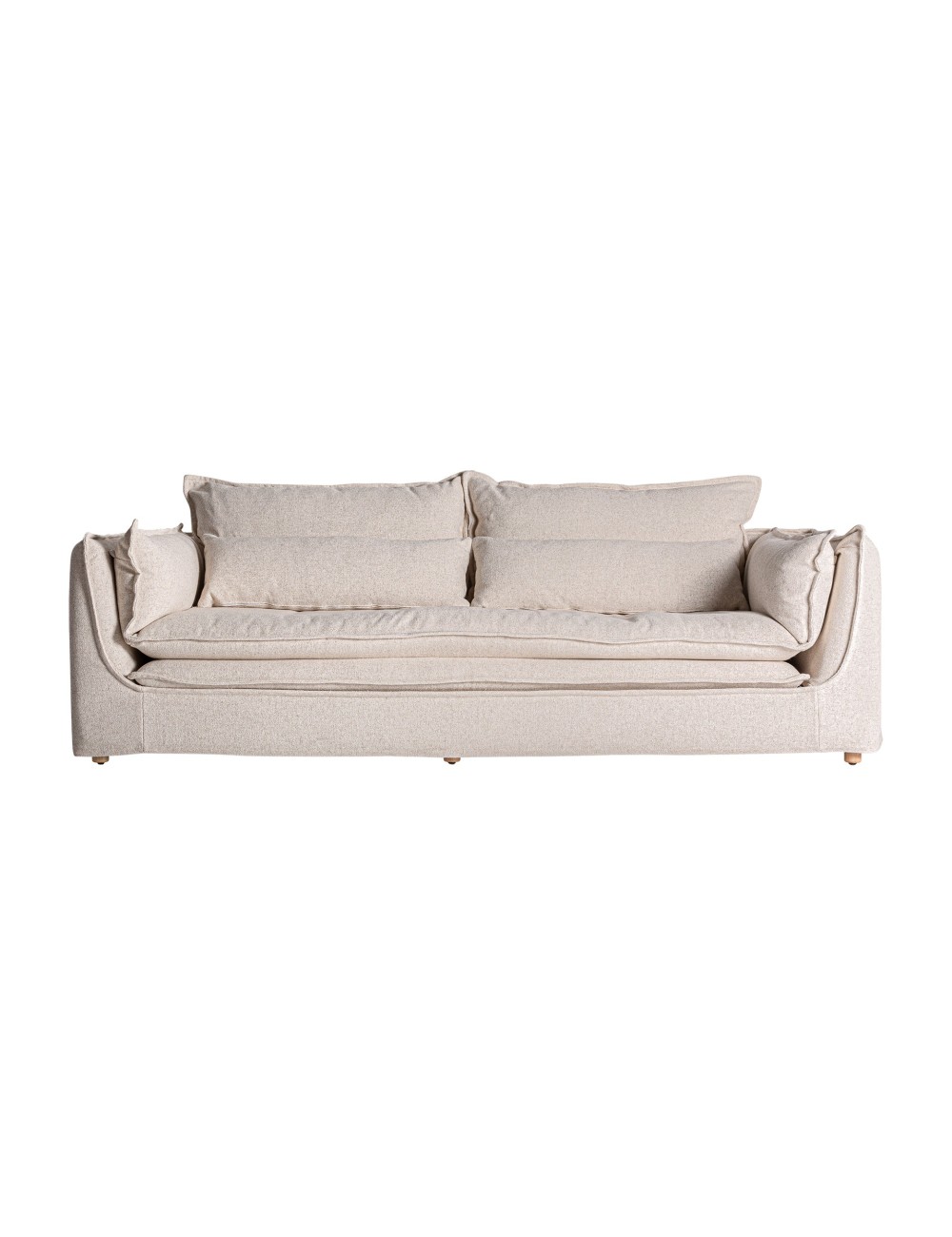 Sofá selmes, en color blanco roto, de estilo shabby chic. Fabricado en poliéster, combinado con espuma y madera de pino. Producto desmontable, desenfundable.