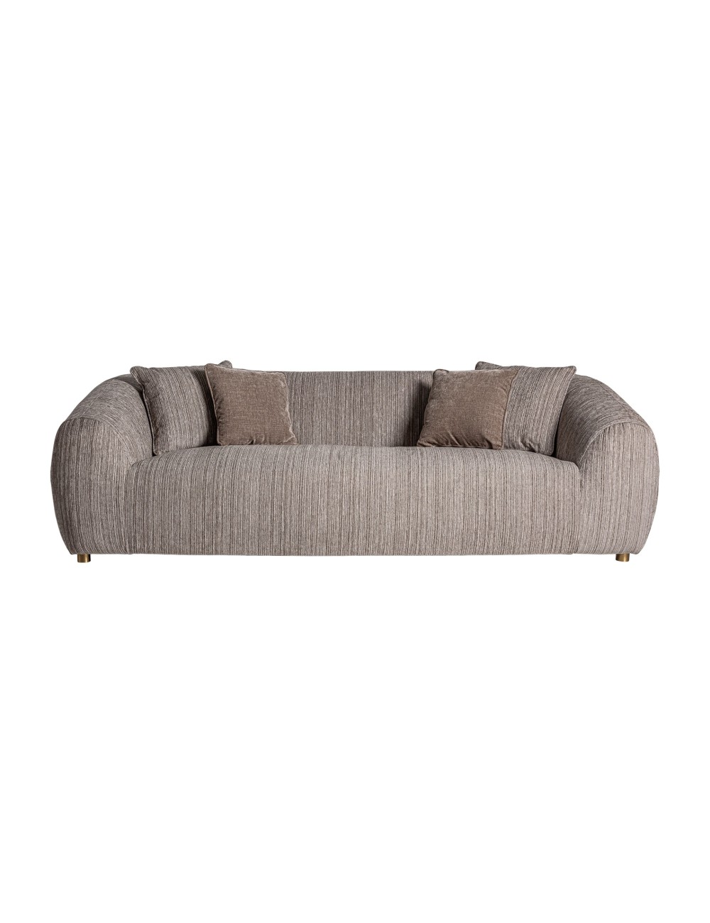 Sofá dolcedo, en color topo, de estilo art deco. Fabricado en madera de pino, combinado con acero. Producto desenfundable.