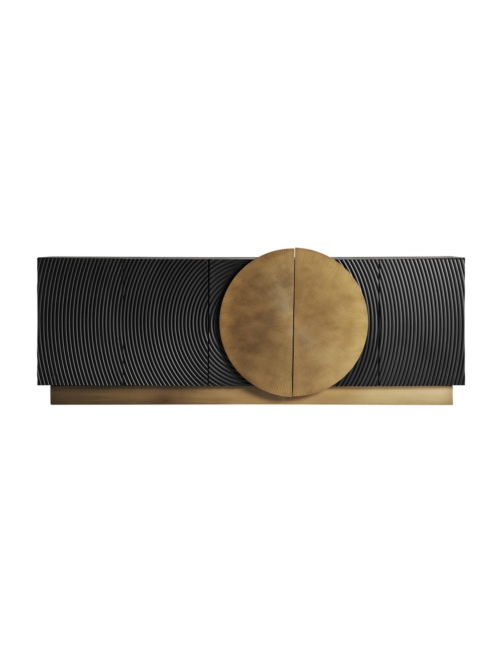Aparador dobeln, en color negro/oro, de estilo art deco. Fabricado en hierro, combinado con madera de mango.
