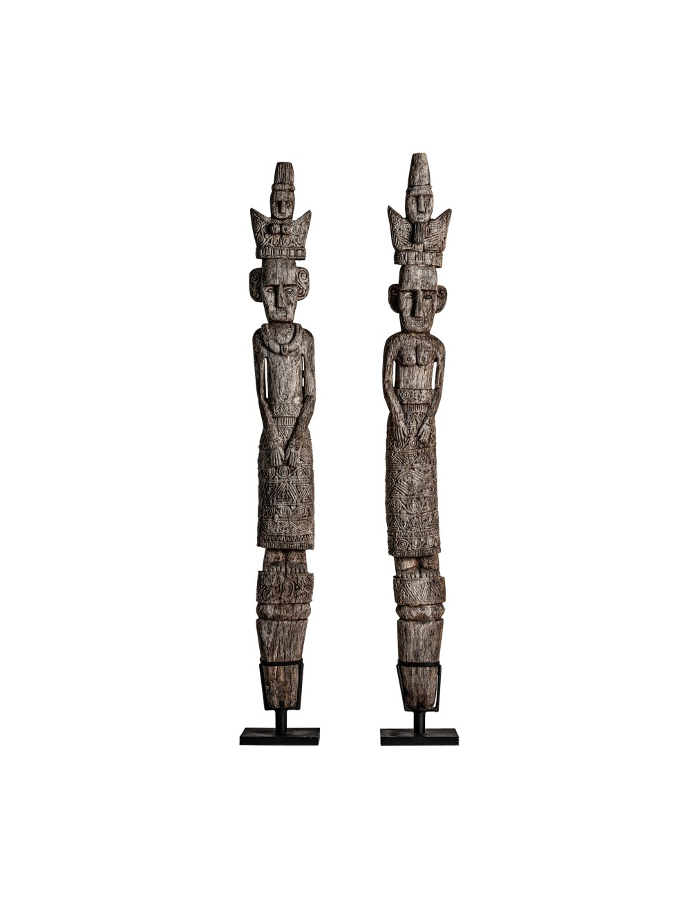 Escultura pie j/2, en color natural envejecido, de estilo étnico. Fabricado en madera tropical.