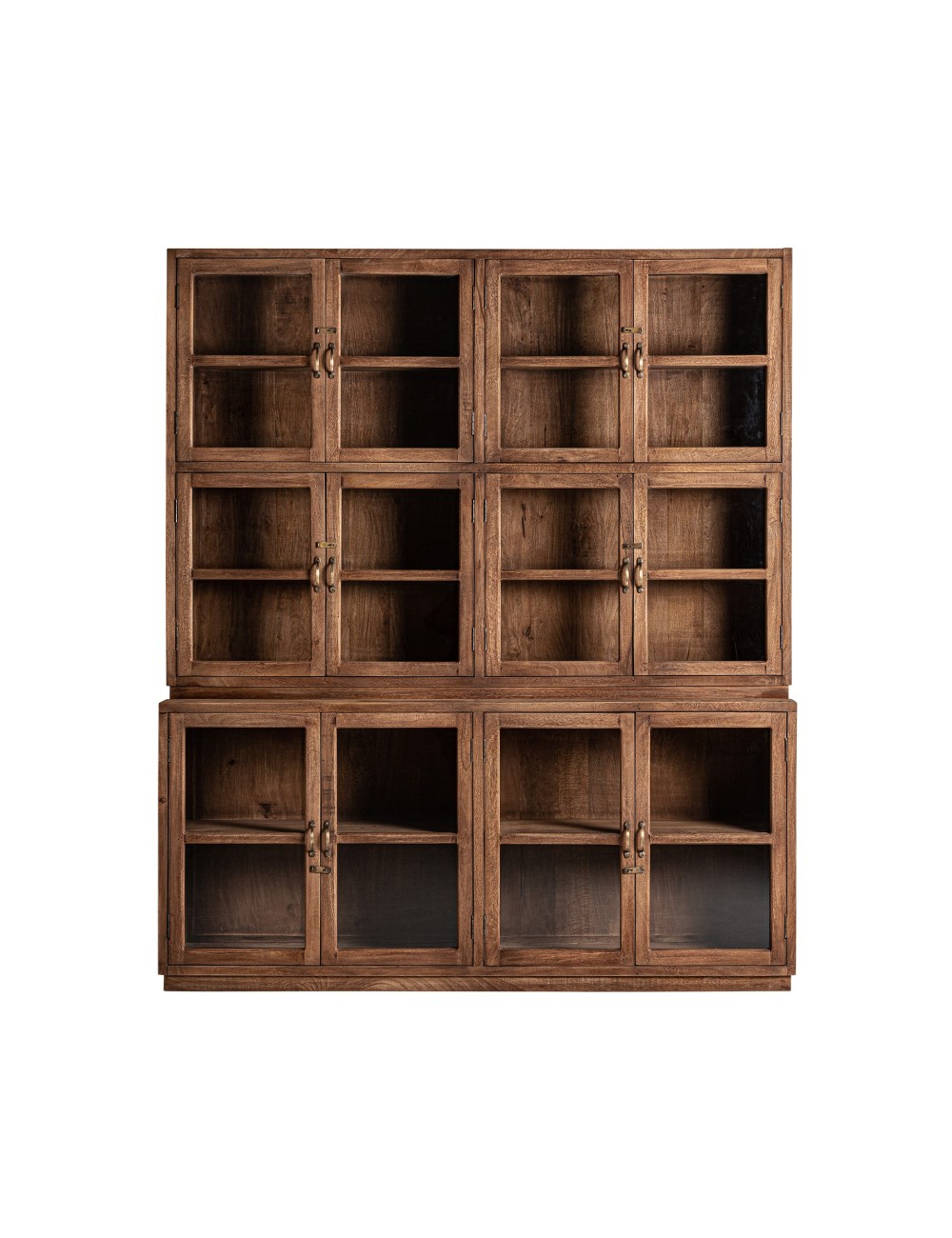 Vitrina jekye, en color marrón natural, de estilo rústico. Fabricado en madera tropical, combinado con cristal.