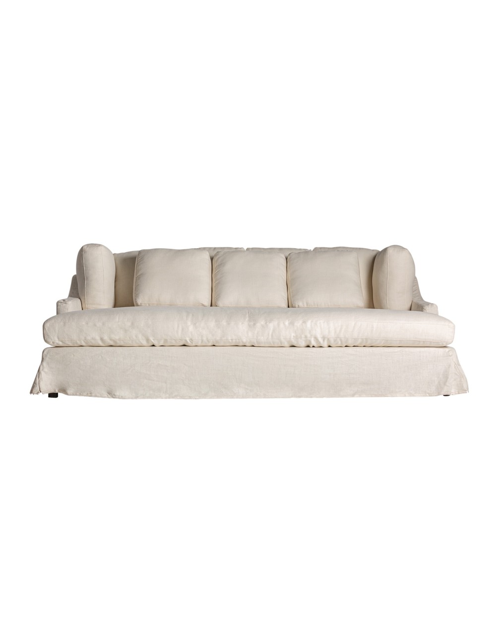 Sofá kemence, en color blanco roto, de estilo contemporáneo. Fabricado en madera de pino. Producto desmontable, desenfundable.