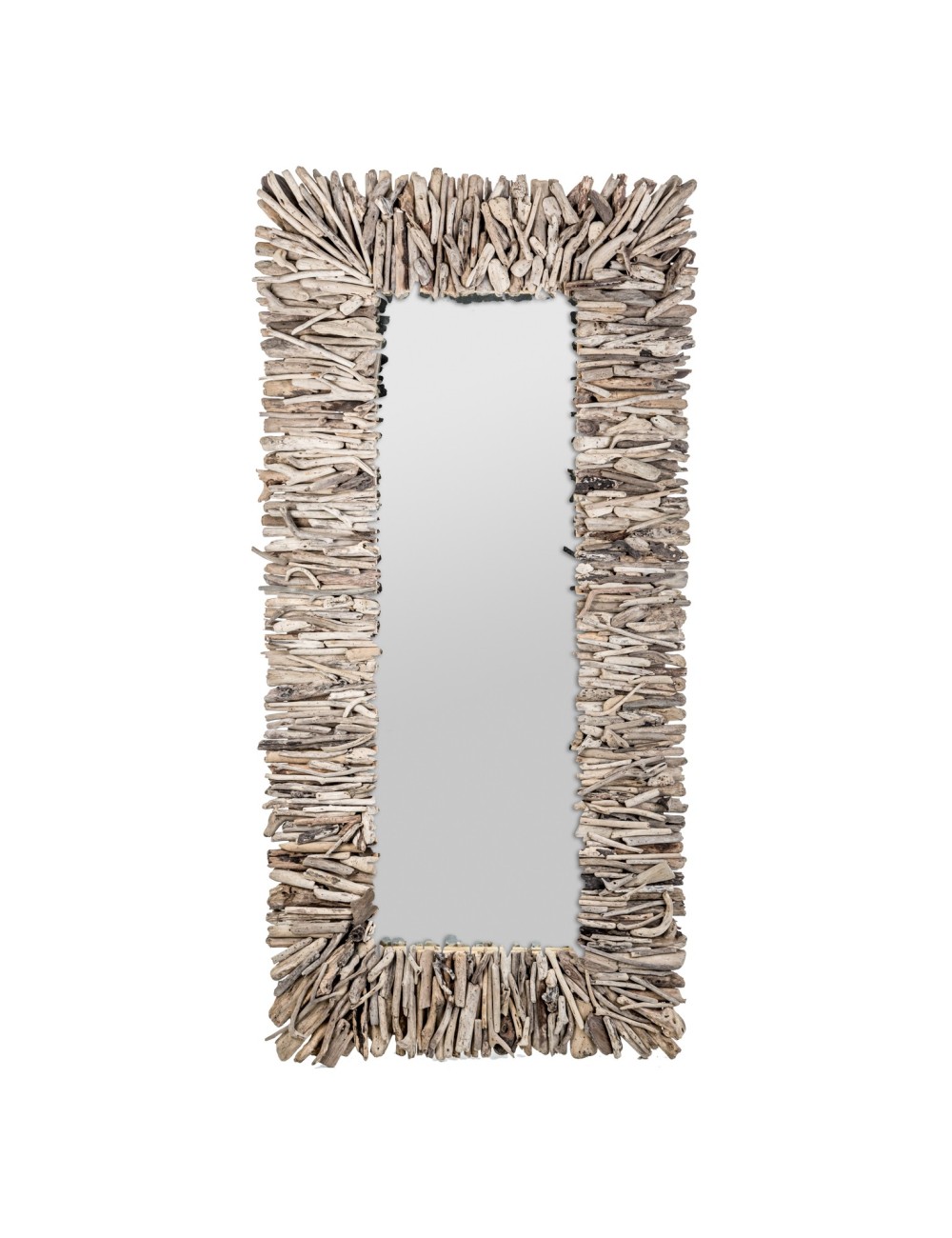 Espejo rectangular varverg, en color natural, de estilo étnico. Fabricado en madera tropical, combinado con espejo.