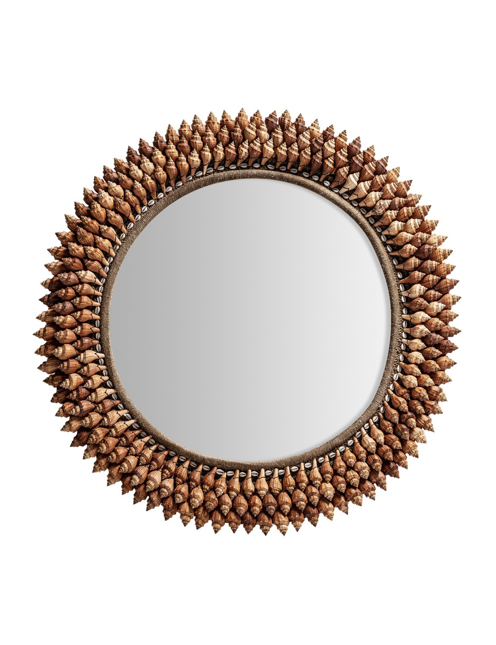 Espejo redondo caracolas, en color tonos en marrón, de estilo étnico. Fabricado en espejo, combinado con concha y madera dm. | Espejo Riley, en color Ocre, de Estilo Art Deco.Fabricado en Hierro, Combinado Con Cristal. | Espejo Roughe de estilo clásico fabricado en espejo en color oro combinado con hierro y madera dm. | Espejo Blahe de estilo clásico fabricado en resina en color marrón combinado con espejo. |