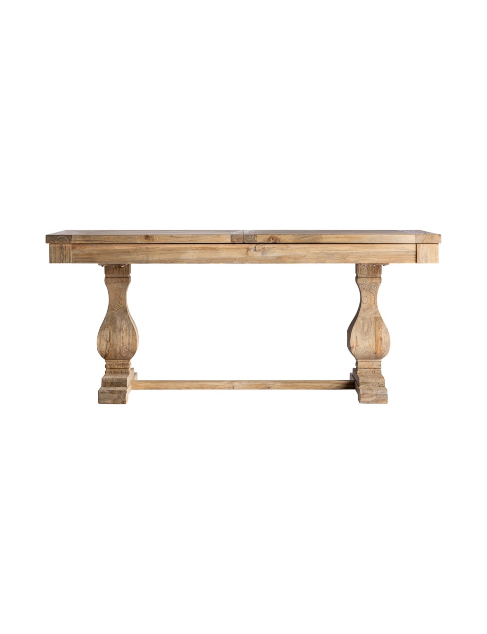 Mesa extensible rectangular berca, en color marrón, de estilo clásico. Fabricado en madera de olmo reciclado. Madera proveniente de antiguas puertaspor lo que puede haber imperfecciones. . Producto desmontable, extensible.