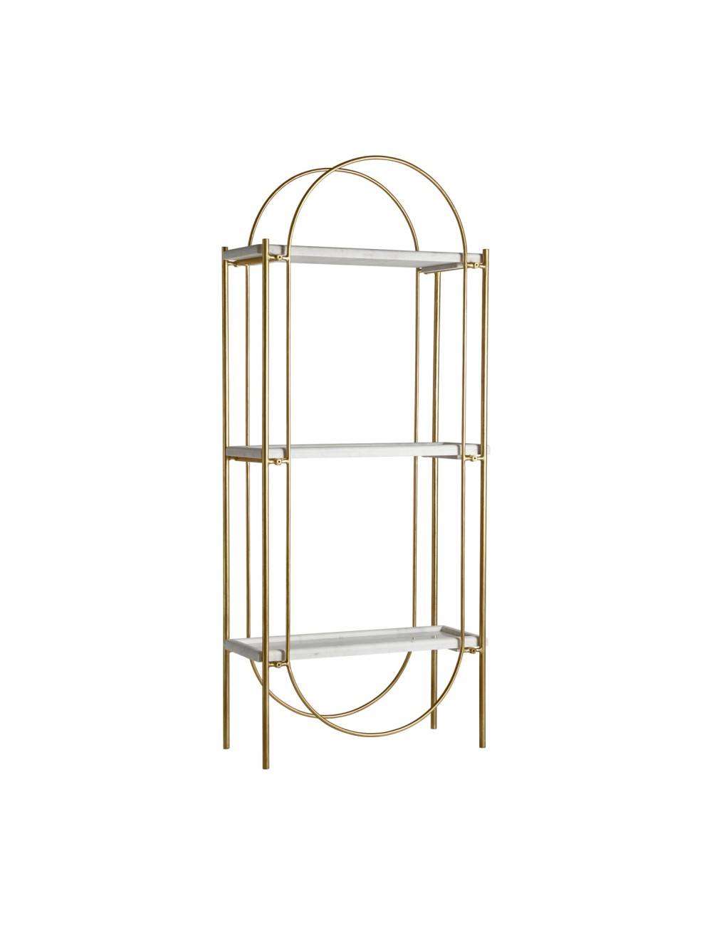 Estanteria dieuze, en color oro, de estilo art deco. Fabricado en hierro, combinado con mármol. Producto desmontable.