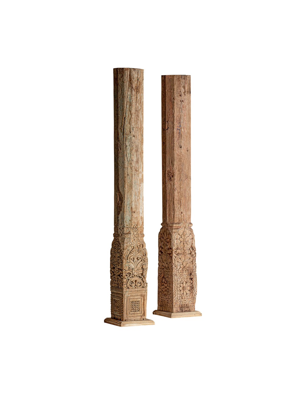 Columna surt gea, en color beige envejecido, de estilo étnico. Fabricado en madera de teka.