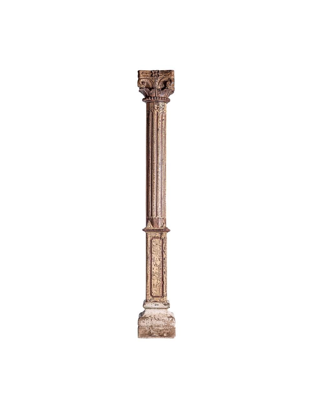 Columna surt dasha, en color tonos en marrón envejecido, de estilo étnico. Fabricado en madera de teka.