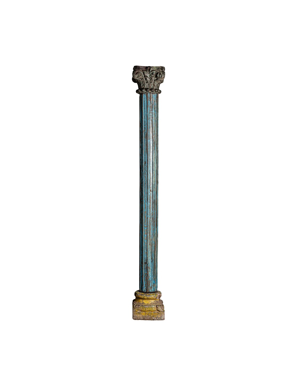Columna cadee, en color tonos de azul envejecido, de estilo étnico. Fabricado en madera de teka. Producto desmontable.