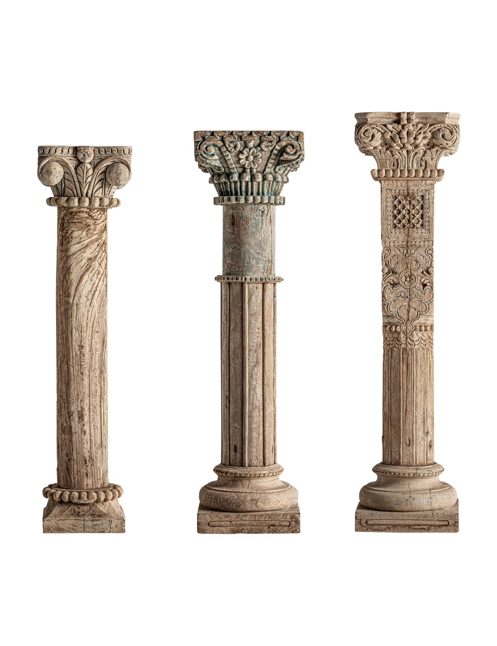 Columna surt askale, en color marrón envejecido, de estilo étnico. Fabricado en madera de teka.