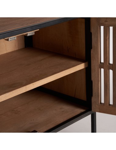 Mueble tv gaffney, en color negro/natural, de estilo industrial. Fabricado en madera de mango, combinado con hierro.