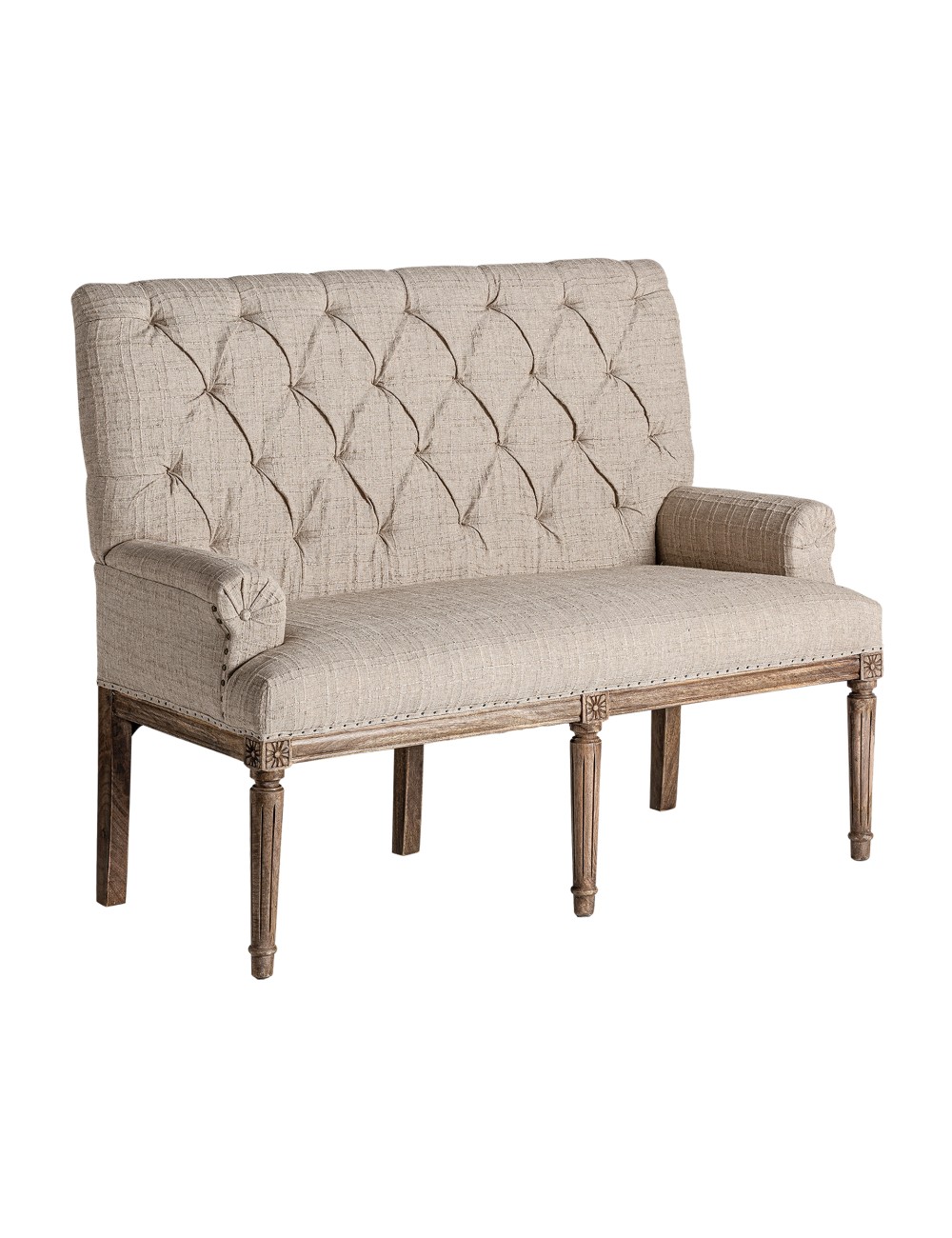 Sofá capitoné bar hestroff, en color beige, de estilo clásico. Fabricado en madera de mango, combinado con poliéster y espuma.