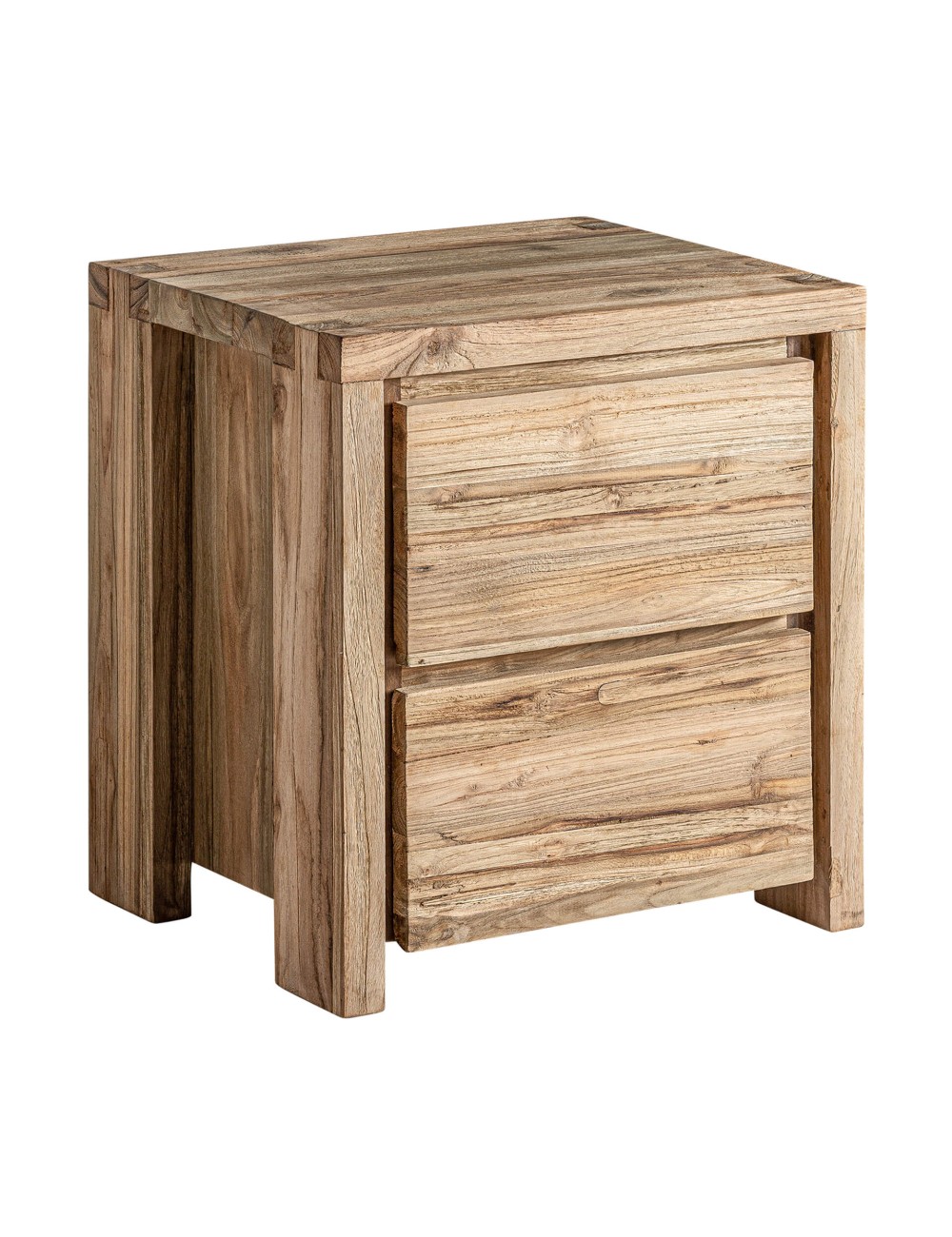 Mesita de noche lux, en color marrón, de estilo colonial. Fabricado en madera de teka reciclada.
