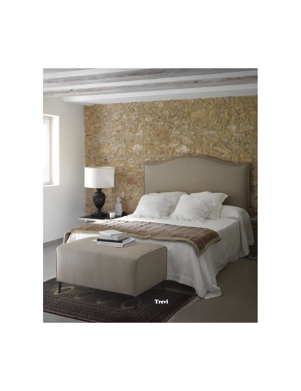 Estructura de madera de pino de 1a calidad con recubrimiento de una plancha de espuma de alta densidad. Acabado tapizado según demanda cliente. Para otros acabados consultar. Opción tachuela oro viejo, bronce y níquel.