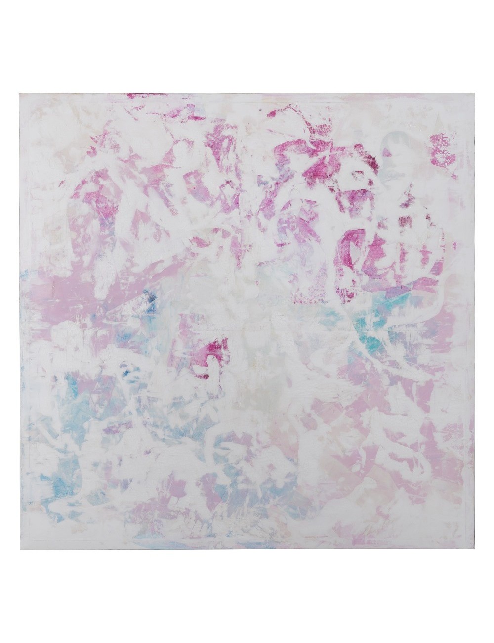 Cuadro de pintura abstracta en tonos rosa sobre lienzo de 120 x 3,50 x 120 cm. Ideal para decorar cualquier espacio con un toque moderno y elegante.