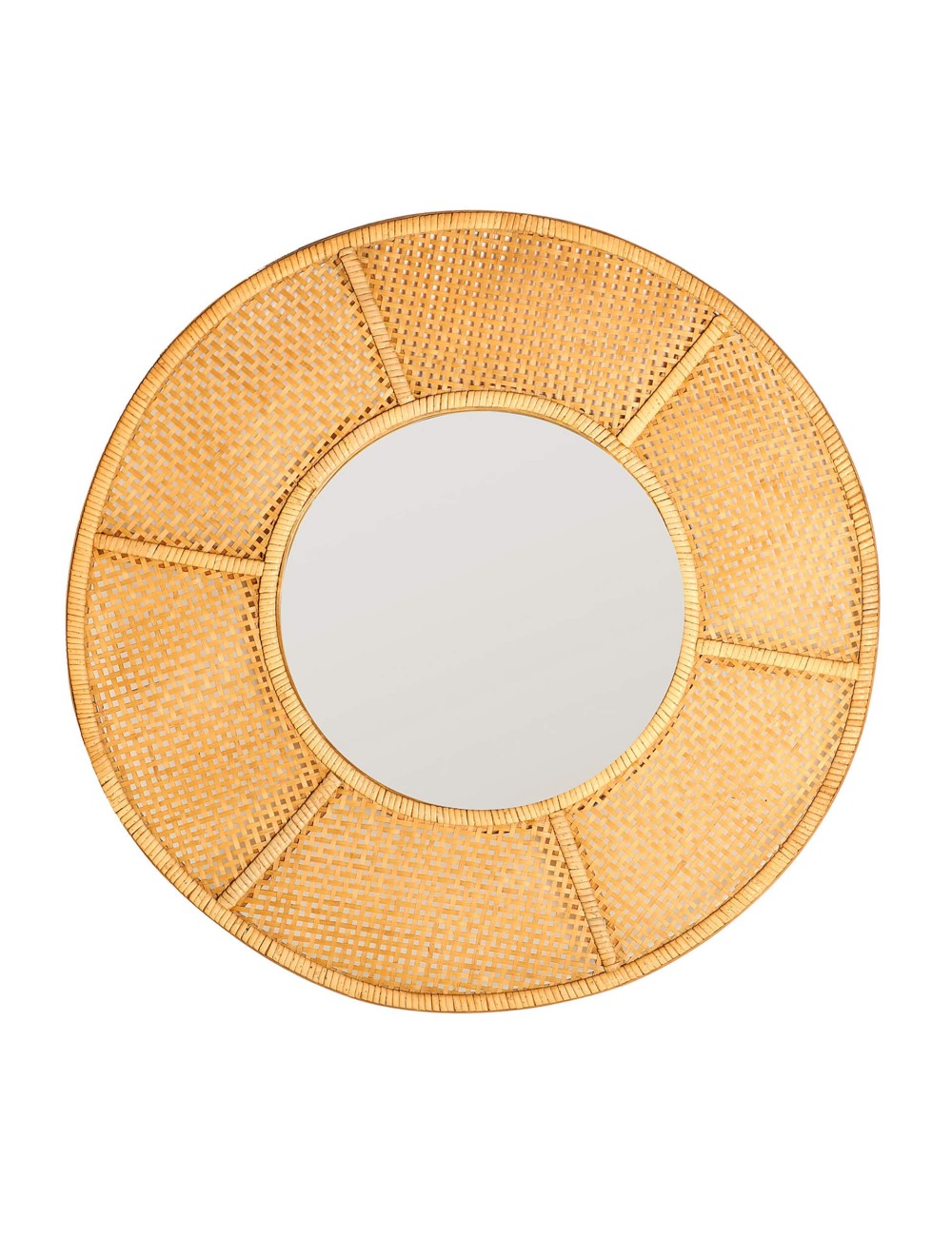 Espejo redonda enzo, en color natural, de estilo boho. Fabricado en fibras naturales, combinado con espejo.