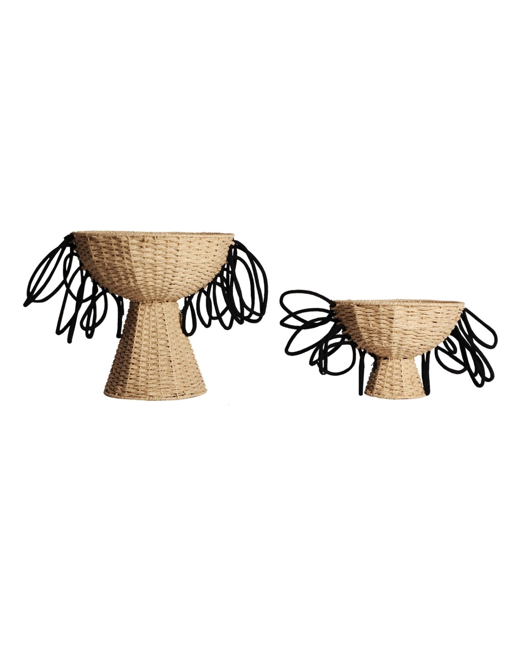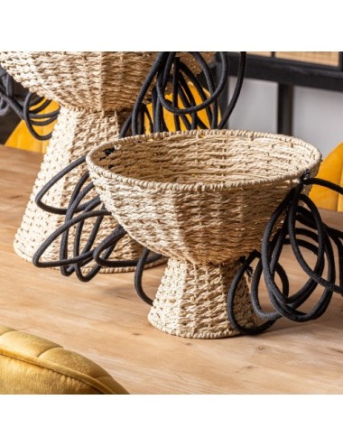 Cesto j/2 redondo wica, en color negro/natural, de estilo boho. Fabricado en fibra natural, combinado con hierro y algodón.