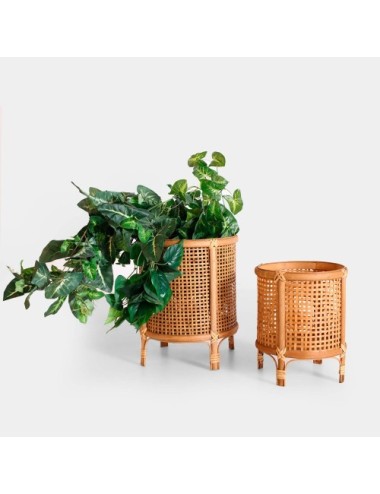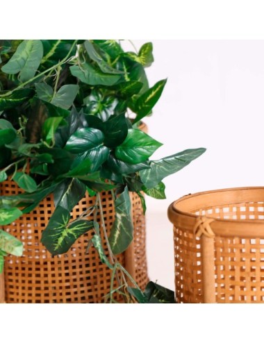 Macetero j/2 redonda arteaga, en color marrón, de estilo boho. Fabricado en bambú.