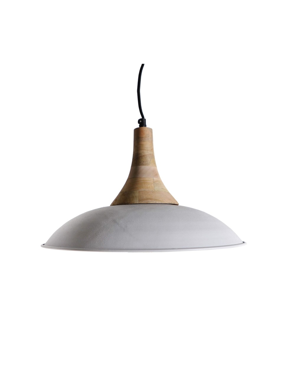 Lámpara de colgar redonda beck, en color blanco/natural, de estilo industrial. Fabricado en hierro, combinado con madera de mango.