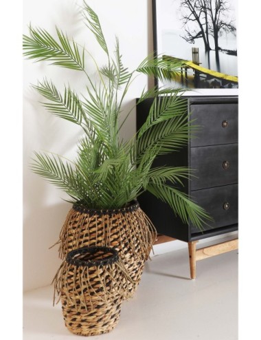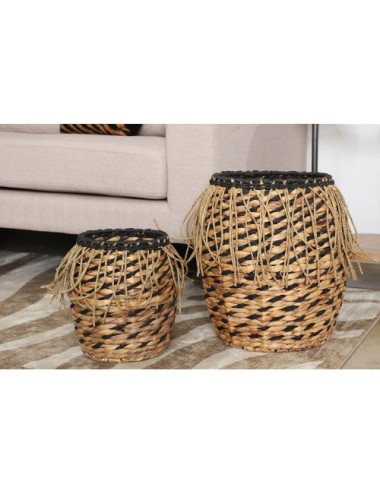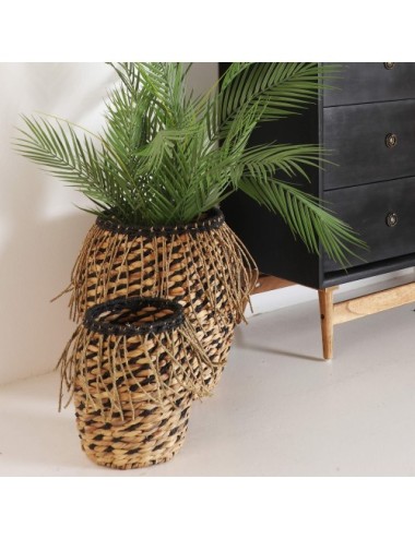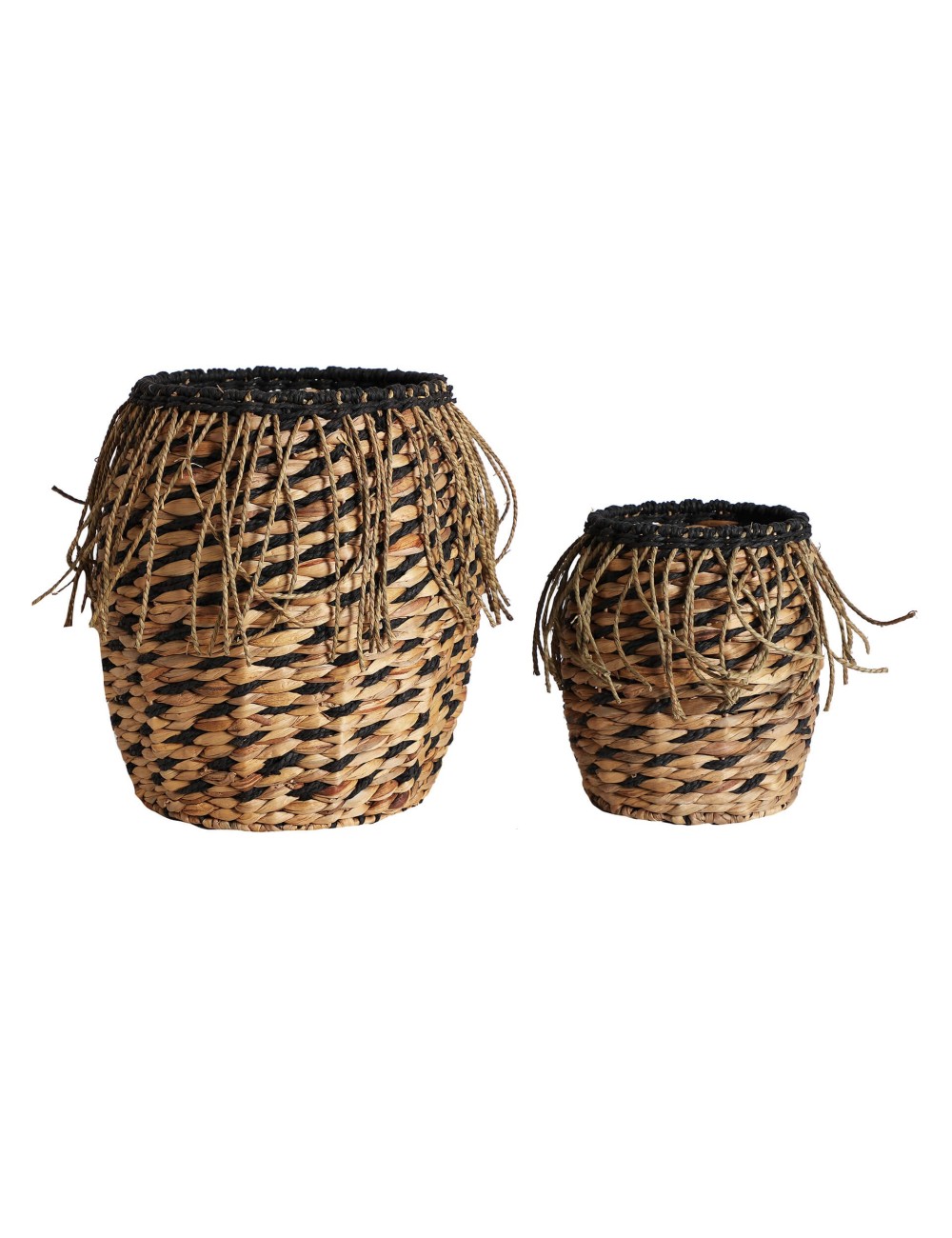 Cesto j/2 redonda blair, en color negro/natural, de estilo boho. Fabricado en fibra natural, combinado con hierro y cuerda.