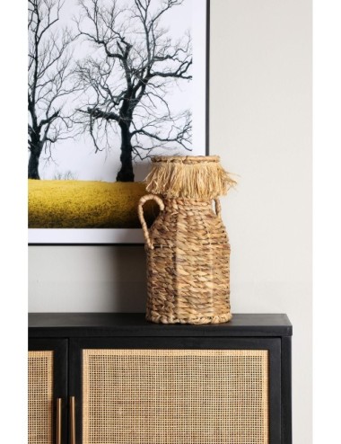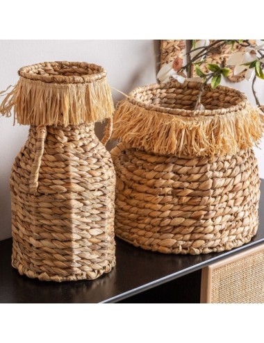 Organiza tus compras con el cesto J/2 Kasses. Con dos compartimentos, podrás separar tus productos y llevarlos cómodamente. Ideal para ir al mercado o hacer la compra semanal. Cesto j/2 redonda blair, en color negro/natural, de estilo boho. Fabricado en fibra natural, combinado con hierro y cuerda. Cesto j/2 redonda dieky, en color marrón, de estilo boho. Fabricado en fibra natural, combinado con hierro.
