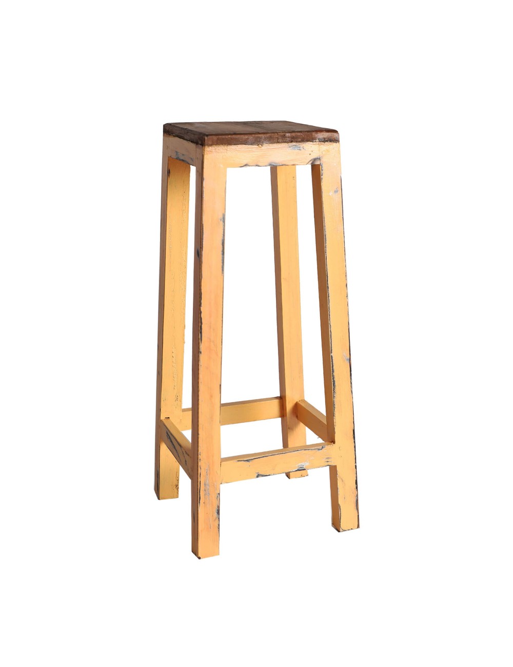 Taburete cuadrado sauris, en color marrón envejecido, de estilo étnico. Fabricado en madera de mahogany, combinado con madera de mango y madera de tamarindo. |