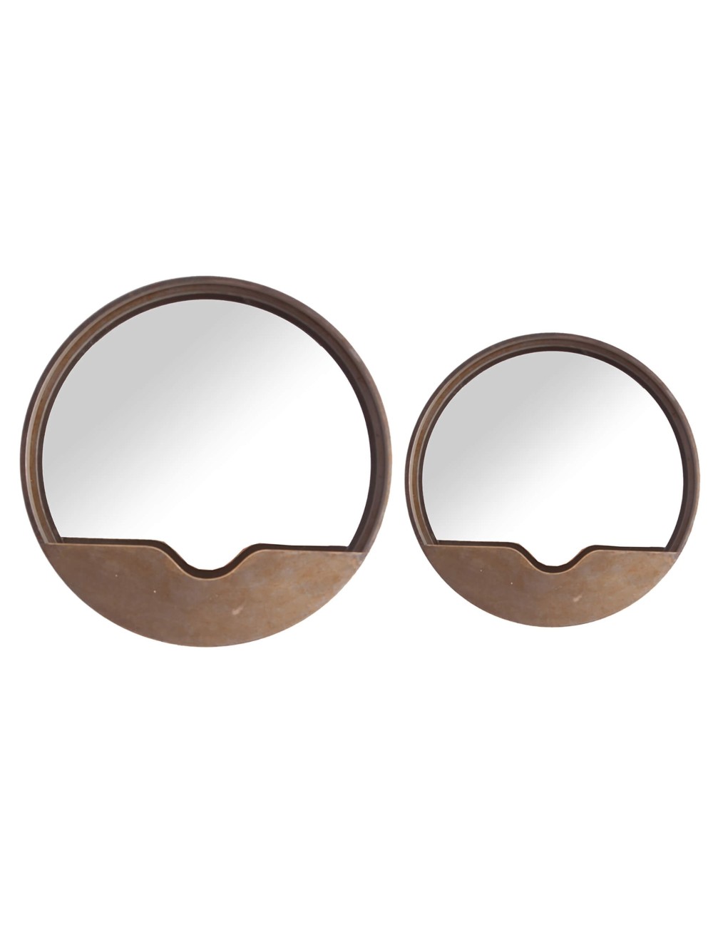 Espejo j/2 redondo thusis, en color oro viejo, de estilo industrial. Fabricado en hierro, combinado con madera dm y espejo.