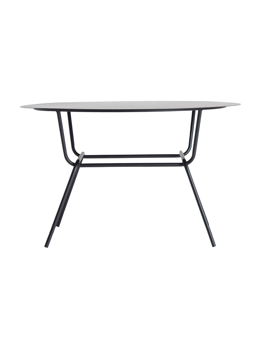 Mesa de centro oval llerena, en color negra, de estilo industrial. Fabricado en hierro.