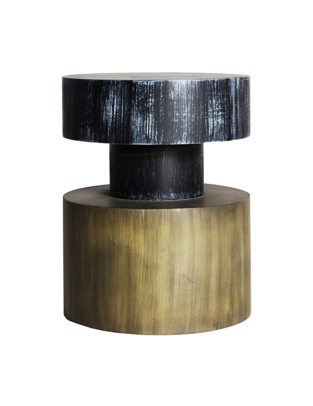 Mesa auxiliar redonda gignat, en color oro/negro, de estilo art deco. Fabricado en madera dm.