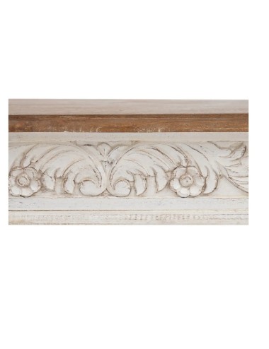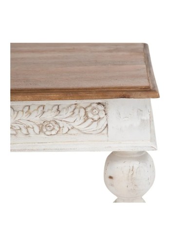 Mesa de centro de mango, con acabado natural en la tapa y base decapada en blanco. |