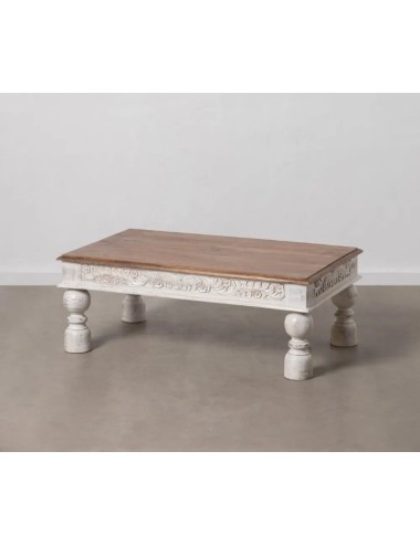 La mesa de centro Boho, fabricada en madera de mango, tiene el acabado natural y decapado blanco perfectos para combinar con cualquier decoración y darle así a tu espacio una personalidad única.