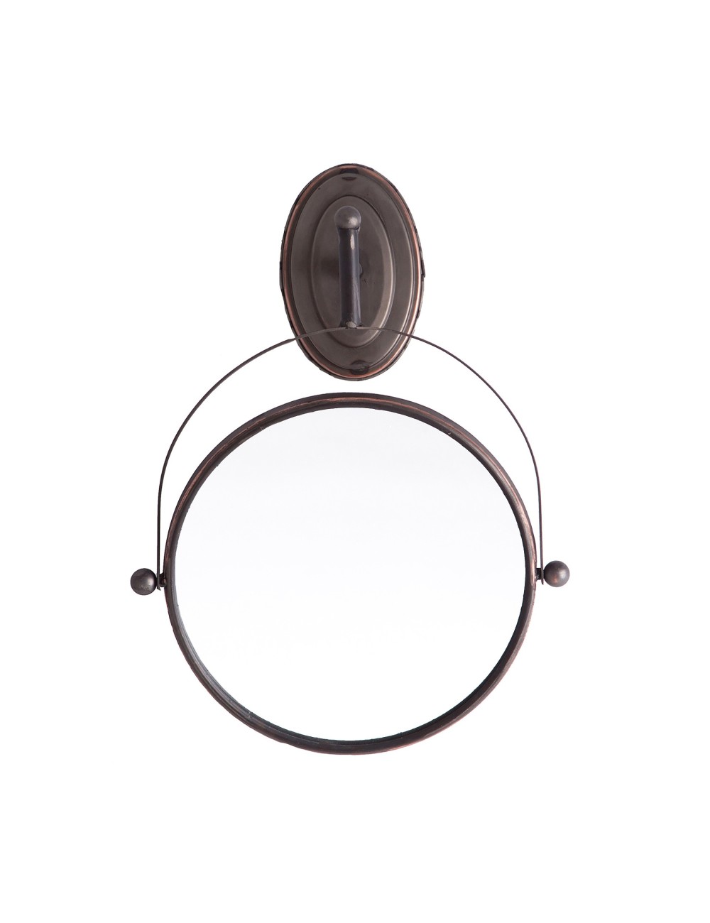 Espejo redondo reken de estilo industrial, fabricado en hierro en color plata con acabado envejecido, combinado con espejo.